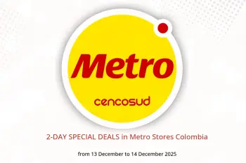 Metro Stores Colombia announces new discounts titled « 2-DAY SPECIAL DEALS » available until 14 December 2025, new offers and prices only in Colombia.
