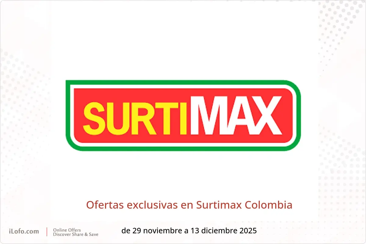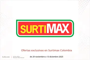 Surtimax Colombia anuncia nuevos descuentos titulados « Ofertas exclusivas » disponibles hasta el día 13 diciembre 2025, nuevas ofertas y precios sólo en Colombia.