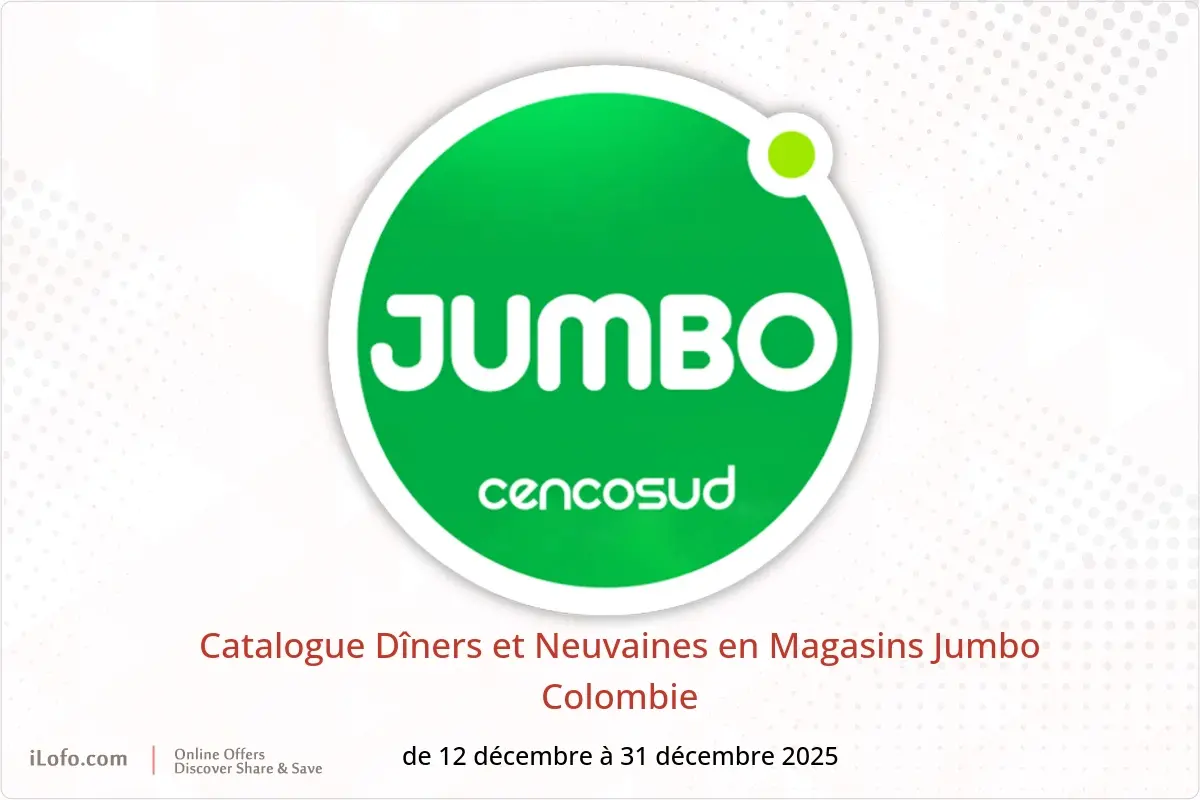 Magasins Jumbo Colombie annonce de nouvelles réductions intitulées « Catalogue Dîners et Neuvaines » disponibles jusqu'au 31 décembre 2025, de nouvelles offres et prix uniquement en Colombie.